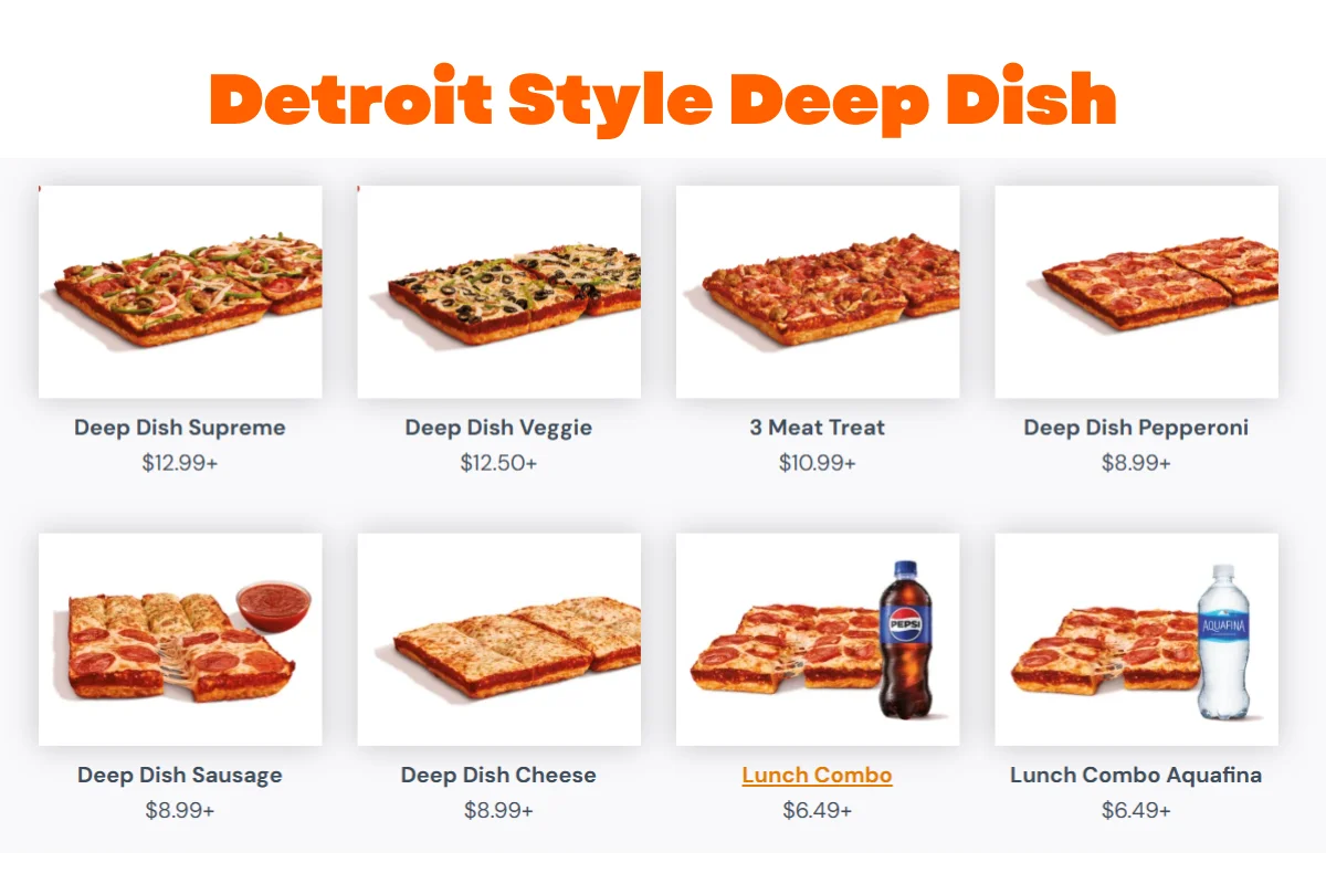 The Deep Dish pizza is one of the most unique offerings on the Little Caesars menu with pictures and prices.